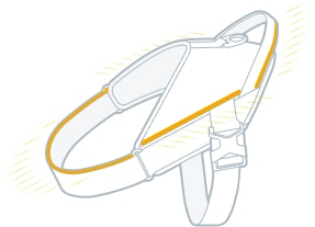 バックルの極薄形状は、犬の体にぴったりフィットします。X字型は、4方向に面取りされた 3Dジオメトリで、どの方向から見ても犬の曲線にフィットします。