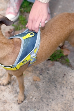 ストリートハーネスは、犬に伝わる力が最適化されています。胸部ストラップは、飼い主の手に持つリードと平行になっているため、飼い主から伝わる力を最も効率的に伝達できます。つまり、必要なときに少ない労力で犬を抑えたり止めたりすることができます。幅広の胸部ストラップとオプションの胸部パッドにより、胸部にかかる力が分散され、ペットが快適に過ごせます。
